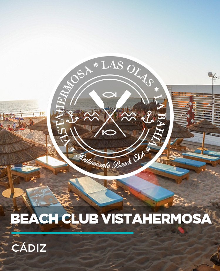 Ya entrada la noche, Beach Club Vistahermosa se engalana. Viste sus mesas, se ilumina a la luz de la luna y ofrece un servicio de restaurante con el sonido de las olas como telón de fondo. Una pequeña pero acertada selección de vinos, mariscos, exquisitos platos gaditanos, una copa entre amigos, un ambiente agradable y sin estridencias, formarán parte de tus cenas.